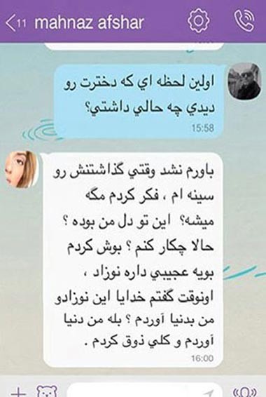 مهناز: چرا. الانم كرده. اما شیرینه . همش فكر می كنم یه كم بزرگ میشه بهتر میشه و حالمون خوب میشه با هم