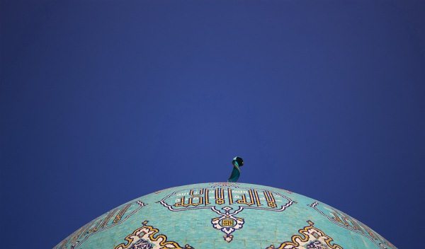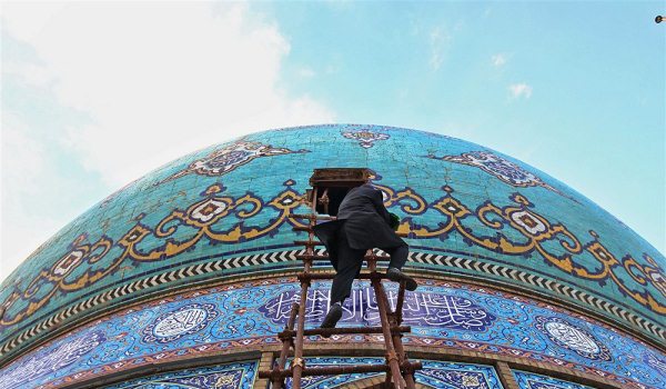 تصاویر/تعویض پرچم گنبد مقدس جمکران