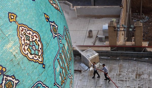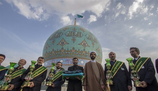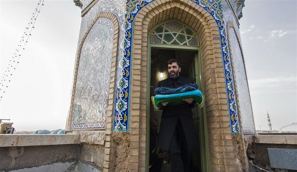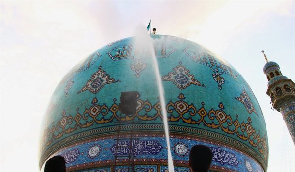 مراسم تعویض پرچم و شست وشوی گنبدهای مسجد مقدس جمکران به مناسبت سالروز بنای این مکان برگزار شد.
