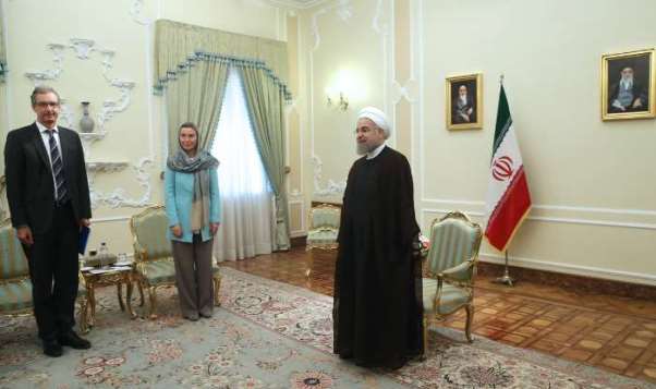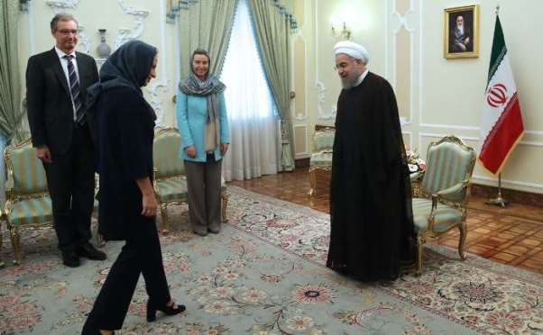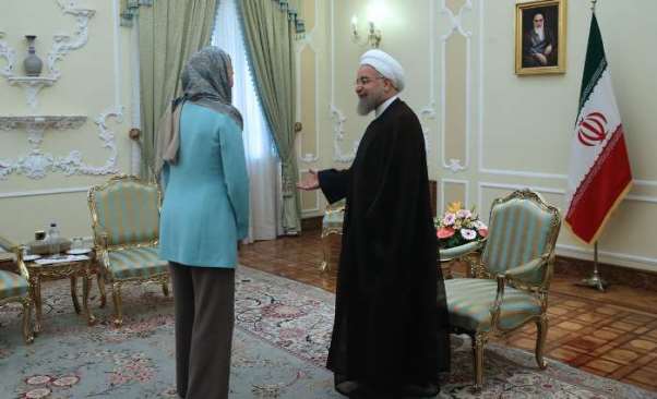 «فدریکا موگرینی» مسئول سیاست خارجی اتحادیه اروپا روز شنبه با حجت الاسلام و المسلمین حسن روحانی رئیس جمهوری اسلامی ایران در محل نهاد ریاست جمهوری دیدار و گفت و گو کرد.