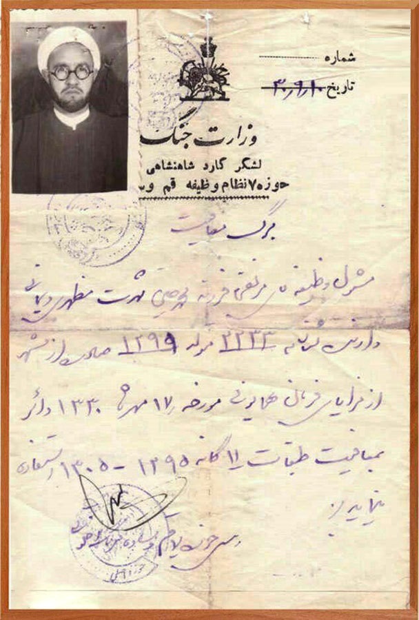 تصویر زیر مربوط به برگه معافیت از خدمت سربازی شهید مطهری است.