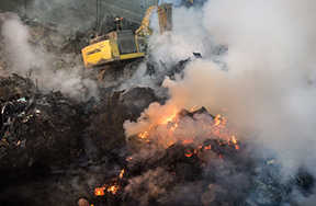 اینجا ته خط پلاسکو است، آوار اینجا دپو می شود، بوی خاک و سوختگی چنان در هوا پخش شده است که گویی پلاسکو در این محل در حال سوختن است.