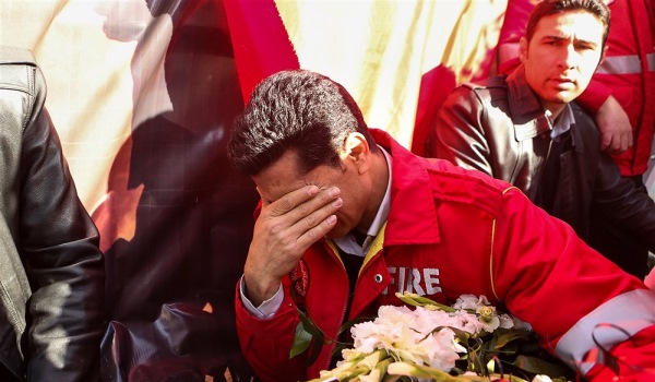 تصاویر/ واکنش یک آتشنشان به پیدا شدن پیکر همکارش