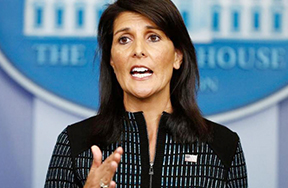 نیکی هیلی گفت: چین باید رهبری خود را نشان دهد. یا چین این کار را شخصا انجام می‌دهد و یا ما وضعیت صادرات نفت به کره شمالی را شخصا رسیدگی خواهیم کرد.