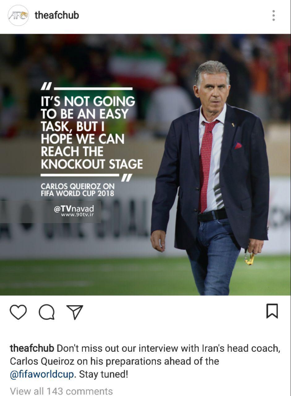 این اظهار نظری است که امروز صفحه رسمی کنفدراسیون فوتبال آسیا در اینستاگرام آن را منتشر کرده است.