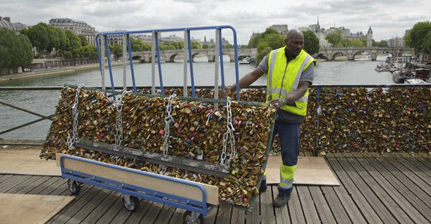 کارگران شهرداری پاریس صبح امروز به جان قفلهای "پون دز ار" یا همان پل قفل عشاق روی رودخانه سن افتادند و قفل ها را با خود بردند.