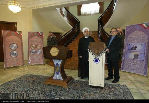 سکه طلا و ایران چک جدید با طرح حرم امام رضا (ع) روز چهارشنبه با حضور حجت الاسلام حسن روحانی رییس جمهور در محل نهاد ریاست جمهوری رونمایی شد.ایران چک پانصد هزار ریالی نسل جدید که دارای امنیت و کارایی بیشتر برای مبادله نقد در جامعه است، به رنگ آبی و مزین به طرح گنبد و گلدسته حرم آقا امام رضا(ع) در رو و تصویر سقاخانه در پشت آن است.همچنین بر روی سکه رایج 5 هزار ریالی نیز نقش طرح گنبد و گلدسته حرم حضرت امام رضا(ع) نقش بسته و آلیاژ این سکه از مس، نیکل و آلومینیوم است.در این مراسم از مدال‌های یادبود میلاد حضرت امام رضا(ع) نیز رونمایی و انتشار شد. مدال‌های یاد شده در قطع 2.5، 5 و 10 بهار است که از سوی سازمان تولید، اسکناس و مسکوت بانک مرکزی ضرب شده است.